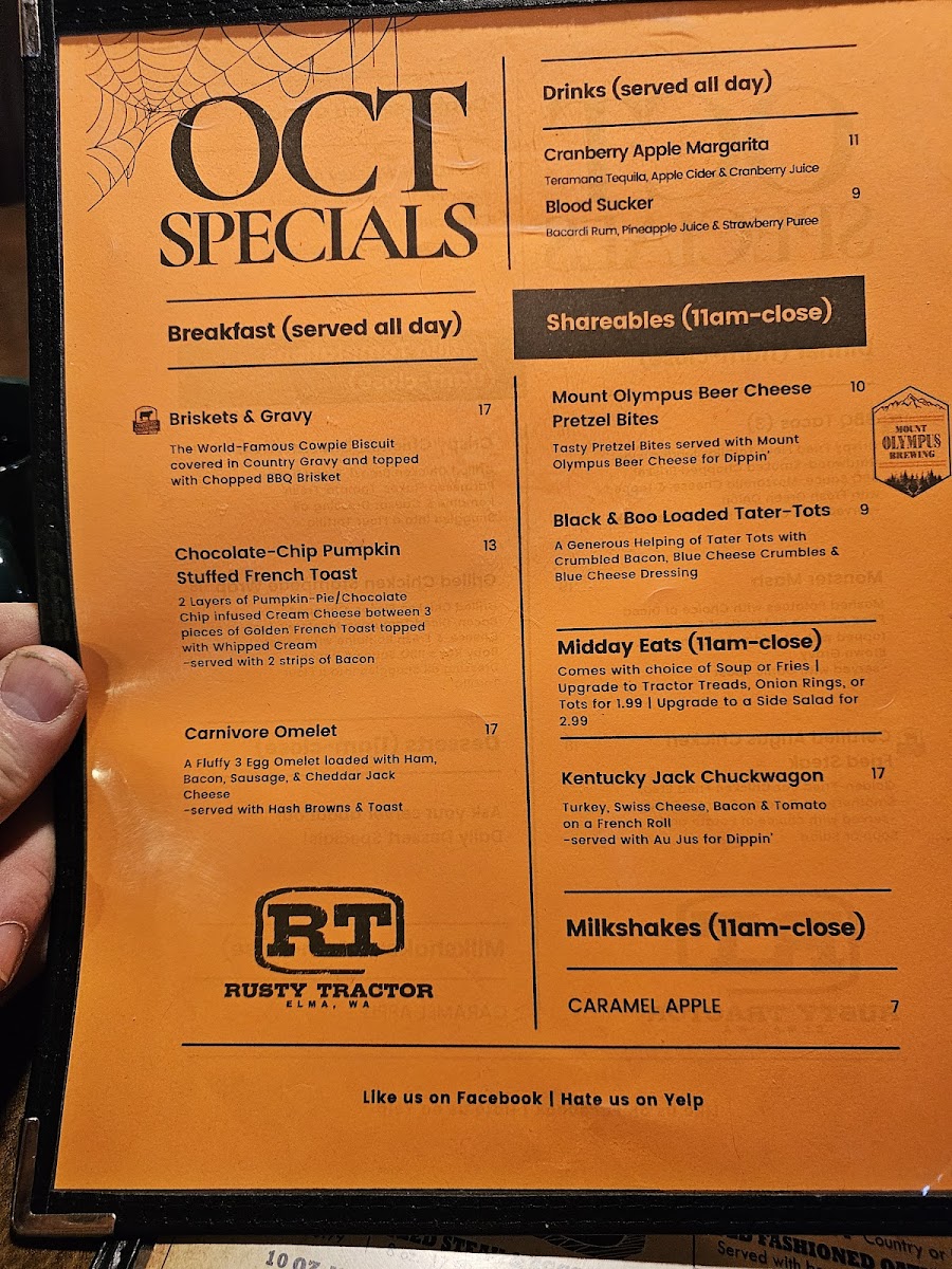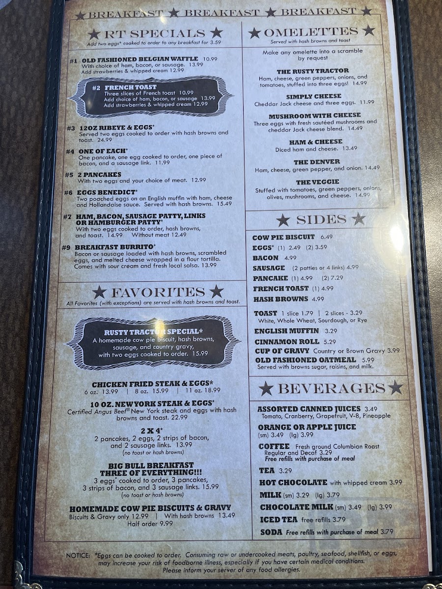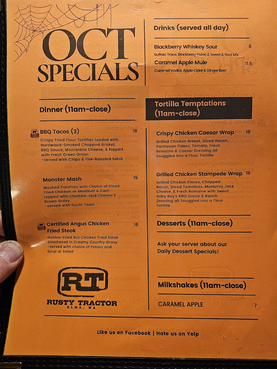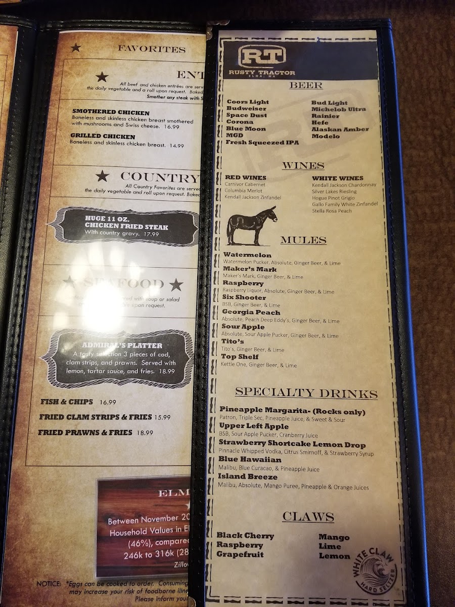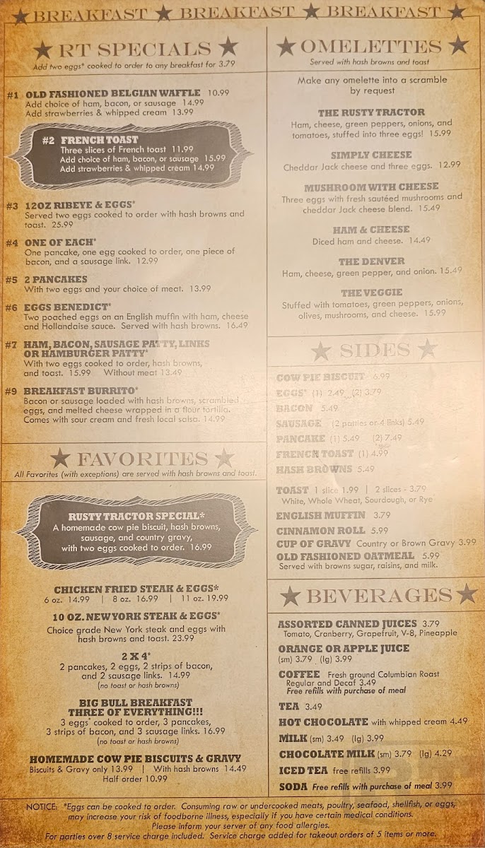 The Rusty Tractor Restaurant offers a straightforward, comforting menu that fits perfectly with its friendly, down-to-earth atmosphere. Whether you’re stopping by for breakfast, lunch, or dinner, you’ll find classic family-style dishes and satisfying pub fare served in a casual setting where the small-town charm shines through.