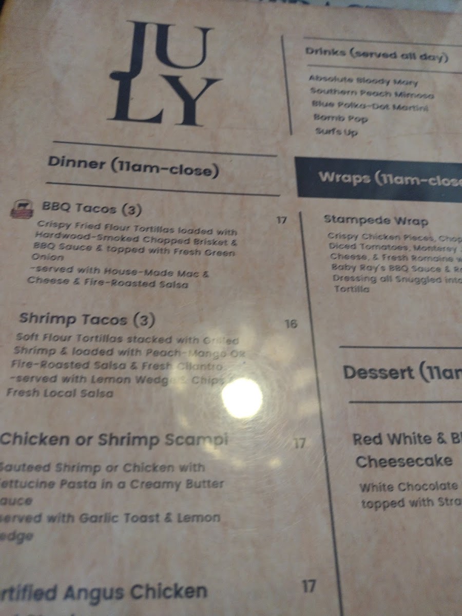 To complement your meal, the bar offers a thoughtful variety of drinks—from local beers to classic cocktails—creating a comfortable spot to unwind. Desserts like Peach Cobbler or Apple Pie provide a sweet finish without feeling over the top, suited to the easygoing rhythm of the restaurant.